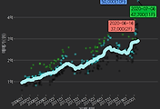 - 하단에 이어지는 거래량 막대차트(bar chart)와 함께 비교해보는 것이 좋습니다.