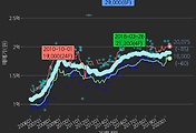 - 하단에 이어지는 거래량 막대차트(bar chart)와 함께 비교해보는 것이 좋습니다.