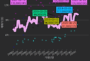 - 하단에 이어지는 거래량 막대차트(bar chart)와 함께 비교해보는 것이 좋습니다.
