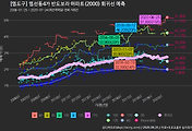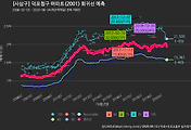 - 하단에 이어지는 거래량 막대차트(bar chart)와 함께 비교해보는 것이 좋습니다.