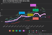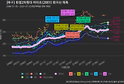 - 하단에 이어지는 거래량 막대차트(bar chart)와 함께 비교해보는 것이 좋습니다.