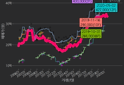 - 하단에 이어지는 거래량 막대차트(bar chart)와 함께 비교해보는 것이 좋습니다.