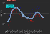 - 하단에 이어지는 거래량 막대차트(bar chart)와 함께 비교해보는 것이 좋습니다.