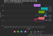 - 하단에 이어지는 거래량 막대차트(bar chart)와 함께 비교해보는 것이 좋습니다.