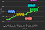 - 하단에 이어지는 거래량 막대차트(bar chart)와 함께 비교해보는 것이 좋습니다.