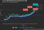 - 하단에 이어지는 거래량 막대차트(bar chart)와 함께 비교해보는 것이 좋습니다.