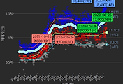 - 하단에 이어지는 거래량 막대차트(bar chart)와 함께 비교해보는 것이 좋습니다.