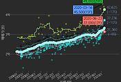 - 하단에 이어지는 거래량 막대차트(bar chart)와 함께 비교해보는 것이 좋습니다.