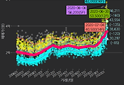 - 하단에 이어지는 거래량 막대차트(bar chart)와 함께 비교해보는 것이 좋습니다.