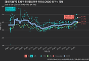 - 하단에 이어지는 거래량 막대차트(bar chart)와 함께 비교해보는 것이 좋습니다.