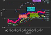 - 하단에 이어지는 거래량 막대차트(bar chart)와 함께 비교해보는 것이 좋습니다.