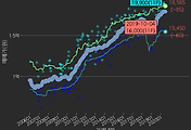 - 하단에 이어지는 거래량 막대차트(bar chart)와 함께 비교해보는 것이 좋습니다.
