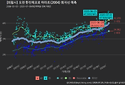 - 하단에 이어지는 거래량 막대차트(bar chart)와 함께 비교해보는 것이 좋습니다.