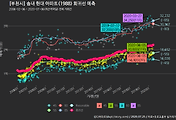 - 하단에 이어지는 거래량 막대차트(bar chart)와 함께 비교해보는 것이 좋습니다.