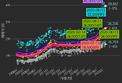 - 하단에 이어지는 거래량 막대차트(bar chart)와 함께 비교해보는 것이 좋습니다.