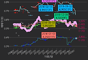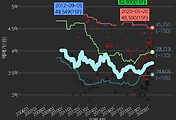 - 하단에 이어지는 거래량 막대차트(bar chart)와 함께 비교해보는 것이 좋습니다.