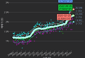 - 하단에 이어지는 거래량 막대차트(bar chart)와 함께 비교해보는 것이 좋습니다.