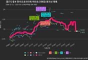 - 하단에 이어지는 거래량 막대차트(bar chart)와 함께 비교해보는 것이 좋습니다.