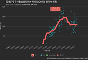 - 하단에 이어지는 거래량 막대차트(bar chart)와 함께 비교해보는 것이 좋습니다.