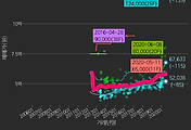 - 하단에 이어지는 거래량 막대차트(bar chart)와 함께 비교해보는 것이 좋습니다.