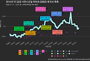 - 하단에 이어지는 거래량 막대차트(bar chart)와 함께 비교해보는 것이 좋습니다.