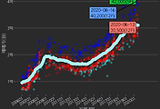 - 하단에 이어지는 거래량 막대차트(bar chart)와 함께 비교해보는 것이 좋습니다.