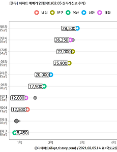 2021020512 2월 5일자 최신 경기 아파트 실거래가 분석 (2021.02.05 Update) - I 오늘의 경기 아파트 05 February 2021 경기도 시(군)/구별 2021년 02월 05일 실거래 업데이트 : 총 975 건 금일 새로 추가된 실거래가 신고 내역입니다. 어제 날짜 대비 975 건이 추가됐습니다. 계약일 기준으로는 2020-12-01부터 2021-02-04까지의 데이터가 포함돼있습니다. 각 구별 내역과 차트가 이어집니다. [가평군] 실거래가 업데이트 : 3 건 [가평군] 아파트 매매가 업데이트(02.05 실거래신고 추가) 동 아파트 단지명 층 계약일 실거래가 가평읍 썬힐 (85㎡)️ 9 2021-01-29 2.28억 썬힐 (65㎡)️ 14 2021-01-22 1.9억 에이원파란채 (85㎡)️ 14 2021-01-19 1.95억 [고양덕양구] 실거래가 업데이트 : 14 건 [고양덕양구.. 2021. 2. 5. 2월 5일자 최신 경기 아파트 실거래가 분석 (2021.02.05 Update) - II 오늘의 경기 아파트 05 February 2021 경기도 시(군)/구별 2021년 02월 05일 실거래 업데이트 : 총 975 건 금일 새로 추가된 실거래가 신고 내역입니다. 어제 날짜 대비 975 건이 추가됐습니다. 계약일 기준으로는 2020-12-01부터 2021-02-04까지의 데이터가 포함돼있습니다. 각 구별 내역과 차트가 이어집니다. [시흥시] 실거래가 업데이트 : 62 건 [시흥시] 아파트 매매가 업데이트(02.05 실거래신고 추가) 동 아파트 단지명 층 계약일 실거래가 거모 유호 (60㎡)️ 20 2021-01-15 1.64억 논곡 산호 (60㎡)️ 9 2021-01-09 2.7억 능곡 제일풍경채센텀 (76㎡) 5 2021-01-29 8.48억 대야 청구2 (60㎡)️ 11 2021-01-0.. 2021. 2. 5. 2월 5일자 최신 인천 아파트 실거래가 분석 (2021.02.05 Update) - I 오늘의 인천 아파트 05 February 2021 인천광역시 시(군)/구별 2021년 02월 05일 실거래 업데이트 : 총 237 건 금일 새로 추가된 실거래가 신고 내역입니다. 어제 날짜 대비 237 건이 추가됐습니다. 계약일 기준으로는 2020-12-21부터 2021-02-04까지의 데이터가 포함돼있습니다. 각 구별 내역과 차트가 이어집니다. [강화군] 실거래가 업데이트 : 1 건 [강화군] 아파트 매매가 업데이트(02.05 실거래신고 추가) 동 아파트 단지명 층 계약일 실거래가 강화읍 유성2 (77㎡)️ 5 2021-01-21 0.85억 [계양구] 실거래가 업데이트 : 29 건 [계양구] 아파트 매매가 업데이트(02.05 실거래신고 추가) 동 아파트 단지명 층 계약일 실거래가 계산 신도브래뉴 (58.. 2021. 2. 5. 2월 5일자 최신 인천 아파트 실거래가 분석 (2021.02.05 Update) - II 오늘의 인천 아파트 05 February 2021 인천광역시 시(군)/구별 2021년 02월 05일 실거래 업데이트 : 총 237 건 금일 새로 추가된 실거래가 신고 내역입니다. 어제 날짜 대비 237 건이 추가됐습니다. 계약일 기준으로는 2020-12-21부터 2021-02-04까지의 데이터가 포함돼있습니다. 각 구별 내역과 차트가 이어집니다. [동구] 실거래가 업데이트 : 7 건 [동구] 아파트 매매가 업데이트(02.05 실거래신고 추가) 동 아파트 단지명 층 계약일 실거래가 만석 만석웰카운티 (76㎡)️ 4 2021-02-03 2.6억 송현 송현주공솔빛마을(154) (60㎡)️ 18 2021-02-02 1.88억 삼부 (57㎡)️ 5 2021-01-27 1.93억 솔빛마을주공2차 (50㎡)️ 6 2.. 2021. 2. 5. 2월 5일자 최신 대전 아파트 실거래가 분석 (2021.02.05 Update) 오늘의 대전 아파트 05 February 2021 대전광역시 시(군)/구별 2021년 02월 05일 실거래 업데이트 : 총 99 건 금일 새로 추가된 실거래가 신고 내역입니다. 어제 날짜 대비 99 건이 추가됐습니다. 계약일 기준으로는 2021-01-05부터 2021-02-04까지의 데이터가 포함돼있습니다. 각 구별 내역과 차트가 이어집니다. [대덕구] 실거래가 업데이트 : 8 건 [대덕구] 아파트 매매가 업데이트(02.05 실거래신고 추가) 동 아파트 단지명 층 계약일 실거래가 목상 삼창 (53㎡)️ 5 2021-02-03 0.35억 다사랑 (50㎡)️ 4 2021-01-18 0.87억 법 삼호 (78㎡)️ 5 2021-01-23 1.7억 비래 미래101동 (41㎡)️ 12 2021-01-30 0.87.. 2021. 2. 5. 2월 5일자 최신 대구 아파트 실거래가 분석 (2021.02.05 Update) 오늘의 대구 아파트 05 February 2021 대구광역시 시(군)/구별 2021년 02월 05일 실거래 업데이트 : 총 107 건 금일 새로 추가된 실거래가 신고 내역입니다. 어제 날짜 대비 107 건이 추가됐습니다. 계약일 기준으로는 2020-12-17부터 2021-02-04까지의 데이터가 포함돼있습니다. 각 구별 내역과 차트가 이어집니다. [남구] 실거래가 업데이트 : 3 건 [남구] 아파트 매매가 업데이트(02.05 실거래신고 추가) 동 아파트 단지명 층 계약일 실거래가 대명 삼두 (43㎡)️ 5 2021-01-31 0.87억 드림팰리스 (84㎡)️ 6 2021-01-18 3.05억 봉덕 앞산보성 (77㎡)️ 3 2021-01-05 2.6억 [달서구] 실거래가 업데이트 : 13 건 [달서구] 아.. 2021. 2. 5. 2월 5일자 최신 부산 아파트 실거래가 분석 (2021.02.05 Update) - I 오늘의 부산 아파트 05 February 2021 부산광역시 시(군)/구별 2021년 02월 05일 실거래 업데이트 : 총 167 건 금일 새로 추가된 실거래가 신고 내역입니다. 어제 날짜 대비 167 건이 추가됐습니다. 계약일 기준으로는 2020-12-02부터 2021-02-04까지의 데이터가 포함돼있습니다. 각 구별 내역과 차트가 이어집니다. [강서구] 실거래가 업데이트 : 7 건 [강서구] 아파트 매매가 업데이트(02.05 실거래신고 추가) 동 아파트 단지명 층 계약일 실거래가 대저1 우창더뷰 (69㎡)️ 9 2021-01-10 2.88억 명지 엘크루솔마레 (85㎡)️ 9 2021-02-04 5.2억 명지국제신도시호반베르디움2차 (85㎡)️ 27 2021-